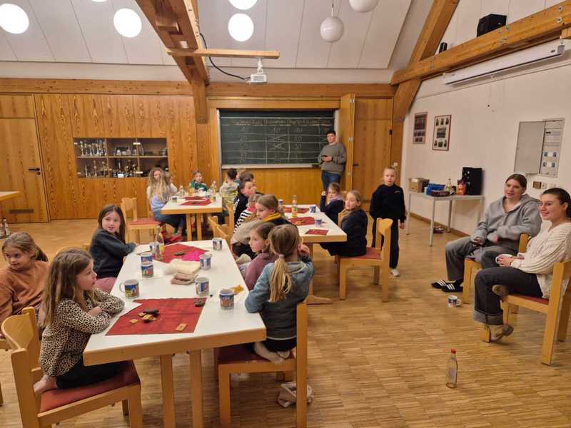 Alle Jahre wieder – so trafen sich auch dieses Jahr die Jungmusiker*innen des Musikvereins Nabern zur Weihnachtsfeier im Probenraum (Feuerwehrmagazin). Traditionell starteten wir mit Punsch, Gutsle und Weihnachtsgeschichte und endeten mit der Reise nach Jerusalem. Dazwischen wurden in diesem Jahr Dosenteelichter gebastelt. Mit Hammer und Nagel waren alle fleißig am basteln – und es gab keine Verletzten!